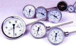 | 双金属温度计是基于绕制成环性弯曲状的双金属片组成。一端受热膨胀时,带动指针旋转,工作仪表便显示出热电势所应的温度值。 |
